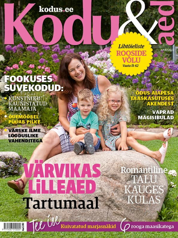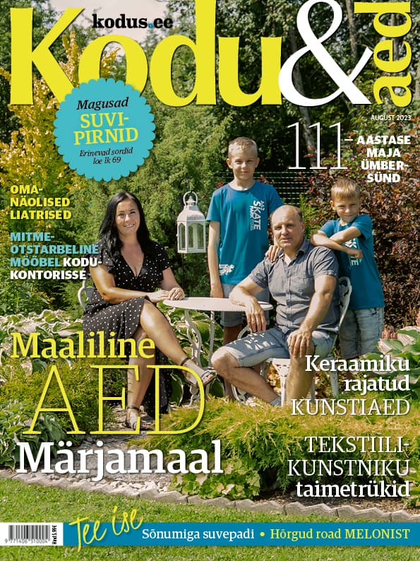 Merili ja Alo on muutnud mehe vanemate rajatud kodu oma käe järgi mõnusaks paigaks, kus silma rõõmustab kaunite kooslustega iluaed ning kogu perel on tore tegutseda....