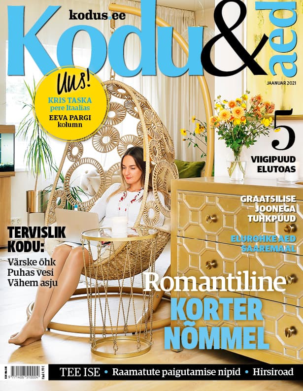 „Kodu on meile nagu puhkepaik, kus ümberringi on puhas ja valge. Me ei taha, et kõik läheks liiga kirjuks,” avaldab Kretel Kuusk, kes koos elukaaslase Elor Eilastega kujundas esimese ühise oma elamise...