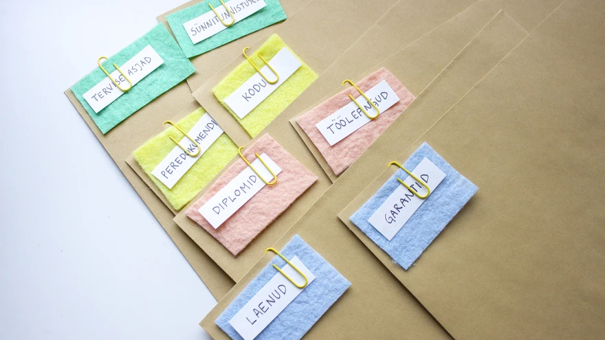 Kaustade asemel võib dokumendid sorteerida ka ümbrikesse. | foto: Laura LiinatHoolimata sellest, et tellid juba aastaid e-arveid, kipub siiski kogunema ka paberdokumente: tervisetestide tulemusi, kindlustusi, garantiisid, lepinguid, teatisi koolist, tunnistusi ja diplomeid. Anname ideid, kuidas lihtsustada ja süstematiseerida oma paberimajandust, et kõik oleks olemas ning kiirelt leitav.