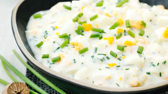 Tõsta salat serveerimiskaussi, kaunista praetud šalottsibula viiludega ja serveeri kohe.