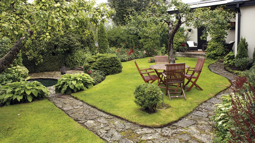 Kujunduslikult on ka küps aed endiselt muutumises: ühed taimed saavad vanaks, teised alles kasvavad. Esmalt rajati 1950. aastail maja juurde praktiline marja- ja viljapuuaed, mis pakub üht-teist siiani. Aga maja ees olid algusest peale ka roosid, floksid ja palju iiriseid, meenutab Kristi, tõdedes, et ema on ikka rohelusele tähelepanu pööranud. Vaike-Aino möönab keskkonna tähtsust. „Rohelus rahustab,” ütleb ta ja meenutab oma „rohelisi juuri” lapsepõlvest Tartumaal: „Vanaisa oli selline taluperemees, kes 150 aastat tagasi rajas ühele poole maja pargi, kui teisel pool maja paiknesid põld ja viljapuuaed. Ema rääkis, et vanaisa tuli tihti mõisast, taskuräti sees mõisaaedniku käest saadud lilleseemned.”