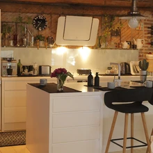 Söögilaua juures üllatab Tiina meid veel. Ruumi kaunilt sobivad täispuidust valged söögitoolid on pärit Jyskist: „Need olid 19 eurot tükk, allahindlusega.”