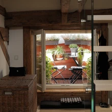Korduvaid mõõdistusi tuli teha ka Are Treppidel, kuid tulemus on vaeva väärt. Korteri teisel tasapinnal on trepi taga aken, millest on võimalik õue astuda. Majade kivikatuste vahel on salajane tilluke terrass, kus päikest ja vanalinna vaateid nautida.