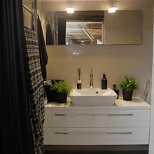 Vannitoa ees seistes muigab Tiina korraks, enne kui uste lugu rääkima hakkab. „Me ei osanud siia tükk aega uksi leida. Ükskord helistasin Veljole, et kuule, ma panin tubadele uksed ette,” naerab ta, tõmmates ukseava ette musta värvi kardina. „Ma olen ju õmblustehnoloog! Nipp on selles, et need peavad jooksma kahe nööri peal, muidu vajuvad ära.”