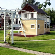 Kui aias on lasteparv, käib suurem möll muidugi kahe korrusega mängumajas, millel on koguni rõdu ja liumägi. „Kui me alles aeda rajasime ja mängumaja ehitasime, siis räägiti tänaval, et siia tuleb lasteaed,” muheleb Marju. Ringtee on käigus nii jalgratta-, rula- kui rulluisurajana. Täpselt ringikujuline muruväljak on aga staadioni eest.