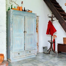 Anu avastas endalegi ootamatult, et vanade asjade taastamine pakub talle suurt rõõmu. „Avastasin endas tillukese restaureerimispisiku. Pimedast ja muldpõrandaga sahvrist, millest nüüdseks on saanud avar vannituba, sai välja tassitud vana ja räämas, uskumatult paksu kihi kärbsepeletamise tooni sinise õlivärviga ülevõõbatud kapp. Kapp oli selili põrandal, paks mullakiht üksikute tohletanud kartulitega põhjas. Lõkkesse?! oli abiliste esimeseks reaktsiooniks. Ma ei mäletagi, kui palju tunde mulla kühveldamise, pesemise, lihvimise ja lõpuks peitsimise peale kulus. Aga praegu seisab kapp täies ilus esiku seinas ääres ja on imeilusat taevasinist värvi. Ka mõned vanad toolid olen korda teinud ja uuele elule äratanud,“ meenutab Anu.