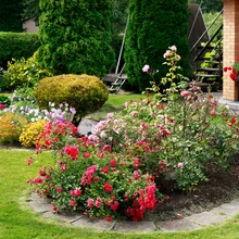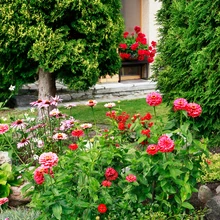Iluaia istutusalad säravad punakates toonides – rooside vahel õitsevad tsinniad, lillekastides begooniad, pelargoonid ja fuksiad. „Naabrinaise käest sain kunagi mõned tsinniataimed – need on väga ilusad, nüüd kasvatan neid igal aastal ise,” räägib Reet. „Neid on mitut värvi ja sorti, aga sel aastal sattusid kõik väga punast tooni õitega, roosidega ühte värvi.”