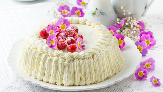 Lase tordil üle öö külmkapis maitsestuda ning kaunista enne serveerimist marjade ja puuviljatükkidega. Kasuta tordi lõikamisel sakilist (leiva)nuga.