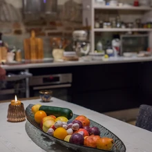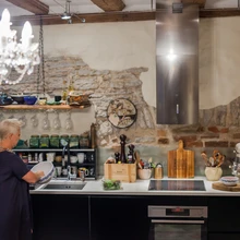 Räägime ka köögilõhnadest. Mõnusas sisehoovis köögi akna all paiknev suur roheline grill saab jälle kiita, sest peale toidule võrratu maitse andmise jätab see ära köögilõhnade mure. „Mulle ei meeldi olla ruumis, kus on näiteks kalapraadimise lõhn. Armastan praetud lesta väga, aga kalapraadimise protsess ise ei meeldi mulle üldse,” teatab Evelin. „Toidulõhn võib olla, aga see peab olema selline hea.” „Küpsetamise lõhn,” hüüatab Siim kohe – on ilmne, et küpsetamise lõhna on selles köögis õhus sageli.