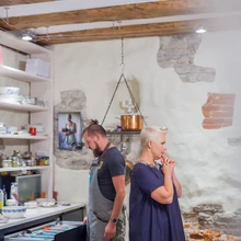 Vanalinna müüride vahel on suure maakivist kamina ja pika tammise lauaga köök, muhe, soe ja natuke muinasjutuline nagu lasteraamatu pilt. Võtab aega, enne kui kaamerad kokku pakitakse, aga Evelin ei lase end sagimisest oma kodus häirida. Rahvusringhäälingu lahkumisest jääb kööki värelema haldjalikku eetrisära ja veidike ka Vahur Kersna malbet naeratust.