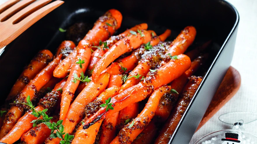 Ahvatlevad ahjuporgandid. | foto: Juta KübarseppÜhe maitsva prae kõrvale sobivad lisaks kartulitele ka ahjus küpsetatud porgandid, millele on maitseks lisatud mett ja sinepit. Kui soovid, võid osa porgandeid asendada pastinaakidega.