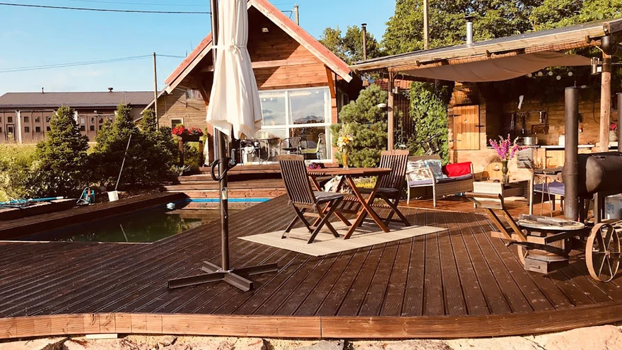 Paunvere väljanäituselt ostetud saun hakkas kasvama nagu mitme peaga lohe, lisandus teine korrus, bassein ja väliköök | foto: Aive TilkKui krundil on maja juba valmis ja peenramaagi olemas, tunnevad paljud koduomanikud, et midagi võiks lisaks veel olla. Liiatigi tahaks peale aiatööde õues ka jõudeaega nautida. Selleks on paljudel hoovis väike lisamaja, talveaed või väliköök. Vaata, milliseid suveoaase on endale ehitatud.