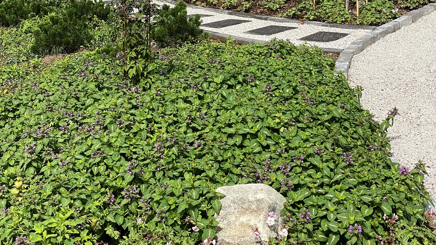 Esiplaanil täpiline iminõges | foto: Ingrid Sembach-HõbemägiRoheline pöetud murupind aias ja haljasaladel on midagi nii enesestmõistetavat, et enamasti me alternatiividele ei mõtlegi. Siiski ei taha muru kasvada sugugi igas kohas, kus meie teda näeksime. Lootusetu ponnistamise asemel võiks keerulised kohad katta pinnakattetaimedega.
