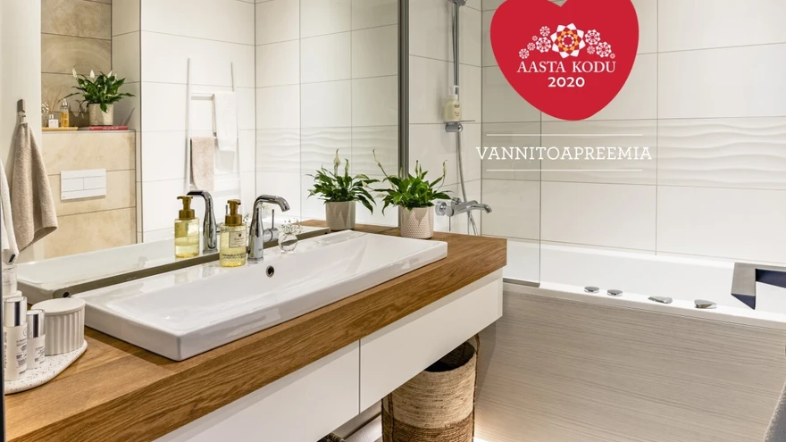 Vannituba on mõnusalt minimalistlik. Siin mängib puidu ja valge õdus kooslus.„Kui kodu peaks kirjeldama veel ühe sõnaga peale kojujõudmistunde, oleks see „rahu“ – kus kõik on paigas ja kus on hea liikuda ja olla.“ Nii kirjutas perekond Nurk kaaskirjas kodukonkursile.