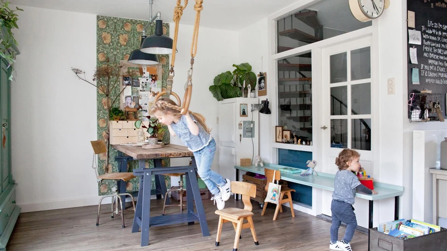 Nelja-aastasel Lottel ja kahesel Pepijnil on avaras elutoas piisavalt ruumi mängimiseks ja joonistamiseks. Klaasuksed, mida ei kasutata, loovad avatud tunde. Mänguasjad ja raamatud on mahutatud dekoratiivsetesse sahtlitesse.Kui hollandlanna Roos 15-aastase tüdrukuna Noa Noa disainitud riietesse armus, poleks ta uskunud, et kunagi hakkab see Taani rõivamärk mõjutama ka tema kodu sisustusstiili.