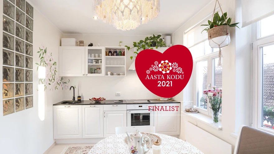 Romantilises meeleolus puhkekorteri köögist avaneb vaade Pärnu peatänava punastele kivikatustele. | foto: Priit GreppHelilooja Raimond Valgre, Pärnu rand oma ajalooliste korvtoolidega, Rannahotell, suudlev paarike, Rüütli tänav sajand tagasi – kõik selle on kunstnik Eda Mikker maalinud siia Pärnu peatänava juugendhoone trepikotta läbi mitme korruse.