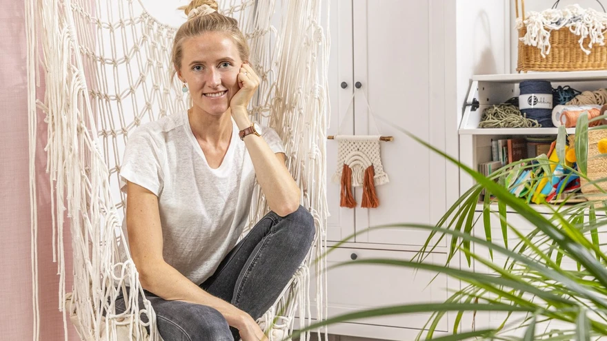 Kaisa-Triin Kosenkranius oma esimese ripptooliga, mille tegemiseks ja kandvuse katsetamiseks kulus mitu nädalat. Nüüd on ripptool jõudnud ühe rahuloleva pere juurde Harjumaal. | foto: Priit GreppKadriorus, 1936. aastal ehitatud Linde majas, tollal ühes linna moodsaimas elamus on kodu leidnud noor pere, mille perenaine Kaisa-Triin Kosenkranius sisustab beebi kõrvalt oma kvaliteetaega taas trendikaks tõusnud makrameega.