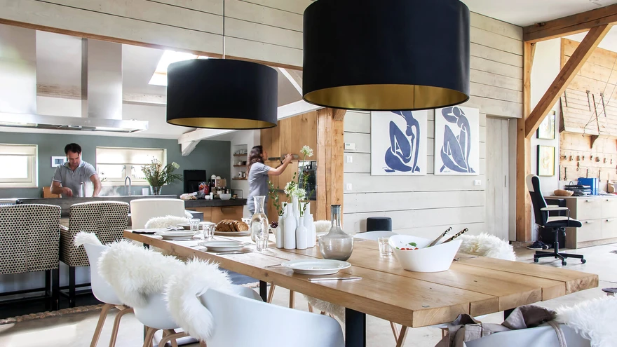 Nõnda avara interjööri puhul on olulised mööbli ja detailide proportsioonid – professionaalidena tajus pererahvas õigeid mõõtusid. | foto: Holly Marderv, Living4mediaMaaliliste vaadete keskel asuv 18. sajandi talumaja seisis 40 aastat mahajäetuna, enne kui Sandy ja Frank selle kaasaegseks koduks muutsid. Tööd tehti armastusega.