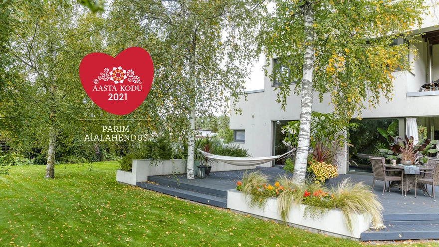 FOTOLUGU VÕITJAST | Aasta Kodu konkursi parim aialahendus! Selles koduaias on lopsakad istutused, kõrged kased, mitmekülgne terrass ja muru kui samet