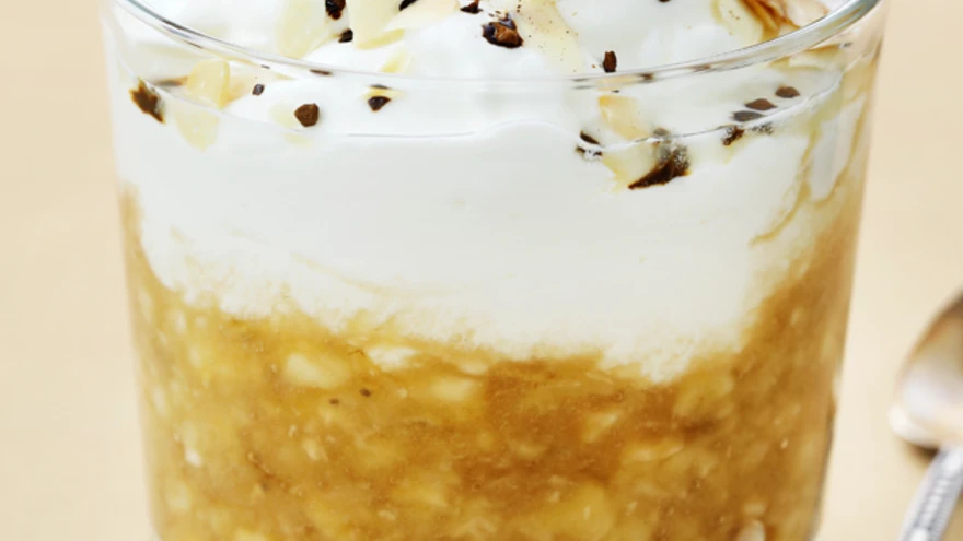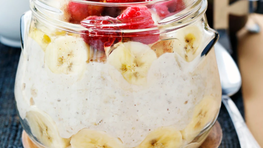 Armastatud banaanikeeksist inspireeritud hommikupuder tuleks valmis segada eelmisel õhtul. Üleööpudru võib teha samasse nõusse, milles seda serveeritakse.