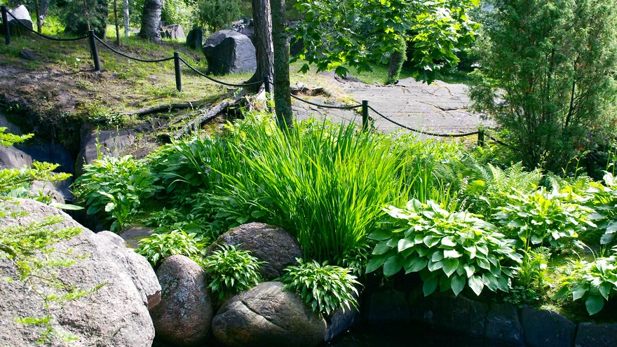 Roihuvuori metsapark Helsingis. Sõnajalad, hostad ja siberi iirised – viimane õitseb vaid lühidalt, kuid tema peene struktuuriga lehed püsivad kaua dekoratiivsed. | foto: Evely KarvakOn oluline, et aiakujundus oleks kaunis ka sel ajal, kui taimed ei õitse. Et kogu aia struktuur ja peamised vaatepunktid oleks paigas ka siis, kui taim on ainult roheline. Sel juhul on hea kasutada taimi, mille lehed on dekoratiivsed ja püsivad kaua ilusad.