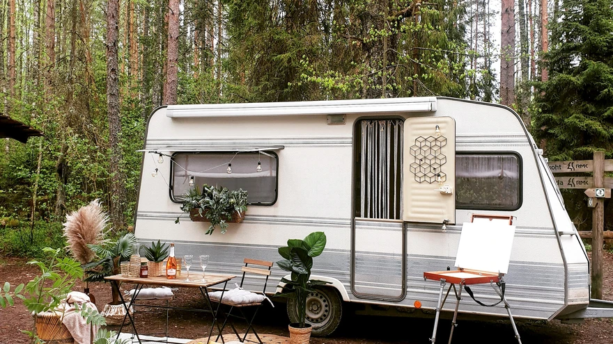 Juba aastaid rännanud asisest karavanist õdusaks pesaks, kus rõhk on meelolukatel aksessuaaridel. | foto: Jaanika Jalast„See on nagu väike kodu, mille viid õue rändama,“ ütleb Meelika Randma, kes on vana karavani õdusaks korrastanud.