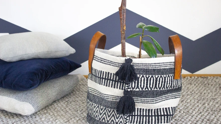 Totaalne muutumine - vaibast taimepotiks! | foto: Laura LiinatSeekordses koduloos hakkasid eriliselt silma suurte taimede praktilised ümbriskotid, millel olid ka sangad, et lilled mugavalt duši alla viia. Kes ei pelga veidi suuremat väljakutset, võib meisterdada endale sellise taimeümbrise vanast vaibast!