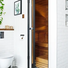 Suure akna ja väikese saunaga vannituba, kus tunnevad end hästi ka toataimed, ehitati kokku vanast imepisikesest magamistoast ja väikesest vannitoast. „Tänu sellele veidrale minitoale saimegi ruumi korterisse sauna lisamiseks. Me teeme palju sporti, saun on hea!” Kabinet jällegi eraldati varasemalt väga suurest elutoast.