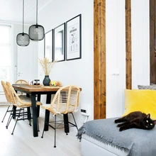 Margit räägib, et esialgu olid nad ettevaatlikud: ega igasugust puitu interjööri liiga palju saa? „Aga erinevalt viimistletud puit, nii mööblina kui ka seinal, põrandal ja laes, tasakaalustab krohv- ja kipspindu hästi.”