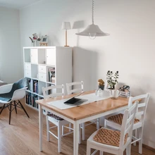 Vanaema ümmargune laud sobib valgeks värvituna koju hästi. | foto: Virge SiirakMustamäel asuvasse Lisete Lige koju siseneja märkab kohe, et tegemist on käsitööhuvilise perenaisega. Oma käega tehtu lisab elamisse isikupära ja hubasust.