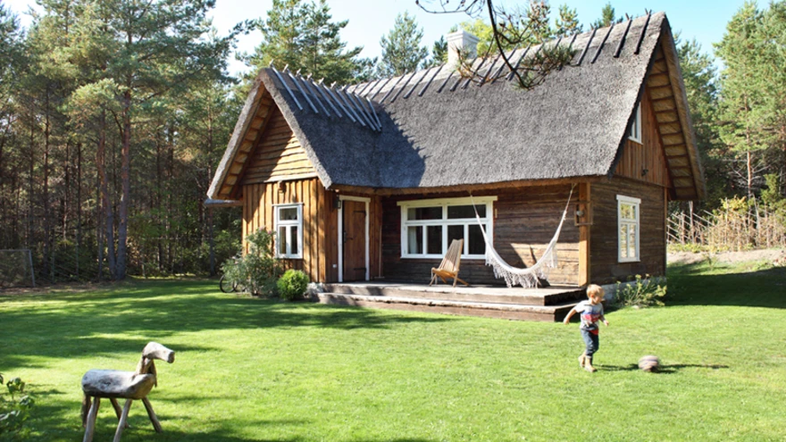 Avaral hoovil on ruumi lastel mängida ja joosta. Isa Reinu tehtud puuhobune mõjub murul kui skulptuur. | foto: Juta KübarseppAngelika ja Rein Mikk, kelle igapäevaelu on tihedalt seotud Estonia teatriga, põgenevad linnamelu eest Hiiumaale – paika, mida nad on kalliks pidanud juba lapsepõlvest peale. Perekond Miku maakodu asub Kassari mändide all. Viie aastaga loodud pelgupaik mõjub puude vahele sulandununa harmooniliselt ja tekitab tunde, et väärikad rookatusega palkmajad on siin meretuulte käes seisnud juba aastakümneid.