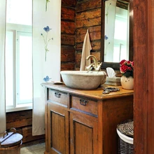 „Väga suur osa on siin meie endi kätega loodud, ka valgustid ja väravad,” räägib Angelika. „Mulle meeldib vana mööblit korrastada, see aitab suurepäraselt lõõgastuda. Olen kõik meie toolid ja kapid, ka valamukapid korda teinud. Sisustuspool ongi siin minu kätetöö, Rein teeb rohkem suuri asju,” räägib kolme lapse ema. Ja lapsedki saavad koos vanematega meisterdada – maal juba igav ei hakka!