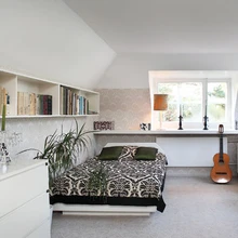 Kolmas korrus on alati olnud hea omaette olemise koht. Aastakümneid oli siin Malle Sasi ateljee-töötuba, kus ta maalis ja kujundusi ette valmistas. Siin on omal ajal sündinud paljud Eesti Näituste kujundused ja sisekujundused, ka näiteks taastatud Maarjamäe lossi tarvis. Nüüd on omaette kööginurga ja tualetiga väikses elamises kolmanda põlvkonna iseseisvumisruum. Kunstiakadeemia tudeng Claudia on tervikut ning vanaema ateljeemööblit juba oma käe järgi edasi arendanud.