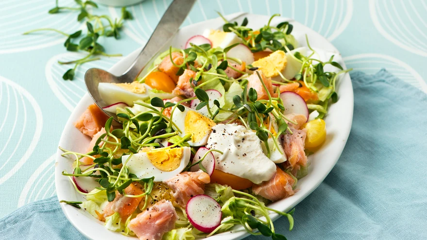 Värske salat suitsukala ja munaga