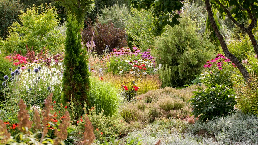 Liigi- ja sordirikkad kaunilt komponeeritud istutusalad. | foto: Meeli TulikJelene Šakeli rajatud aed Saaremaal Ariste külas Jaagu talus on imeline koht. 1,5 hektari suurune ala on tihedalt täis istutatud Inglise stiilis aed.