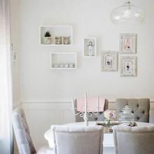 Kui söögitoa kaunis valge sein valmis sai, oli selge, et see vajab riiuleid ja pilte. | foto: Juta KübarseppKuidas üldse on võimalik majast korterisse kolida, imestasid sõbrad ja tuttavad, kui perekond Pärtelson oma äärelinnamaja kesklinnakorteri vastu vahetas.