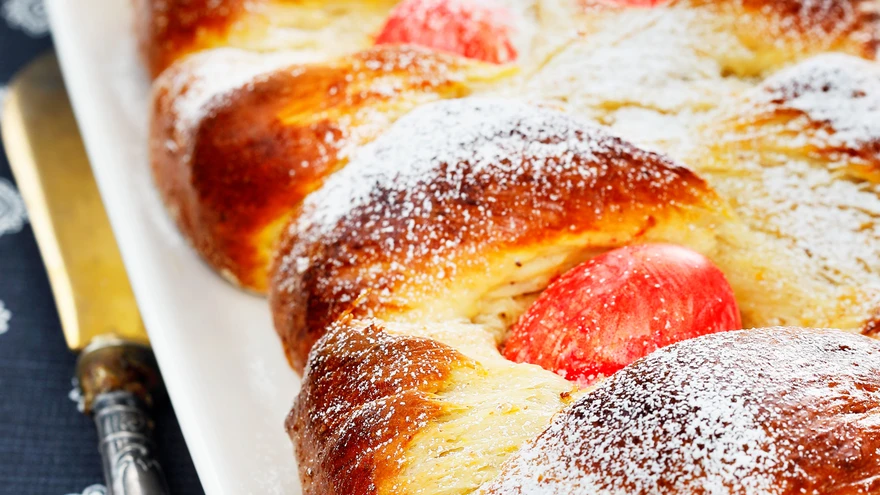 Lihavõttesai. | foto: Juta KübarseppSelles saias on mitmeid eksootilisi maitseaineid: mahlepit ja mastiksipistaatsiat, aga maitsva saia saab ka nendeta. Saia keskele pannakse punaseks värvitud munad, mis sümboliseerivad Jeesuse verd.