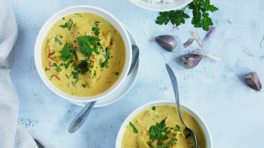 Kuku Paka ehk kana kookoskastmes | foto: Kristi RebaneVahva nimega kanaroog saab oma kuldse värvi kurkumist, kreemisuse kookospiimast ja maitsed seob kokku happeline tomat. Kanakintsuliha või -koibadega kastet tehes tuleb roog mahlasem, fileed kasutades on hautis aga kalorivaesem.