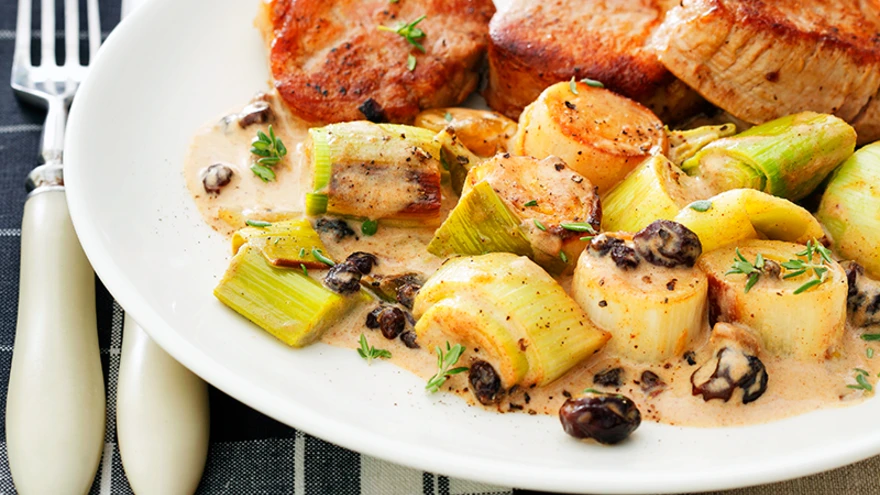 LÕIKA porru juppideks või seibideks. Maitsesta liha soola ja pipraga ning pruunista pannil võis.