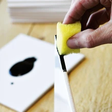 - Värvi kahhelplaatide välimised servad ettevaatlikult švammiga. Jäta need servad värvimata, mis teiste plaatidega kõrvuti paiknevad. Kui vaja, pühi pealispind lapiga korrektseks. Lase hästi kuivada.