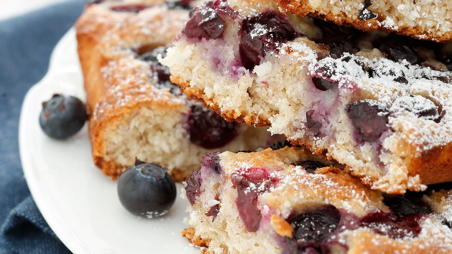 Kookoshelbe-mustikakook. | foto: Juta KübarseppKookoshelvestega mustikakook küpsetatakse lahtikäivas koogivormis.