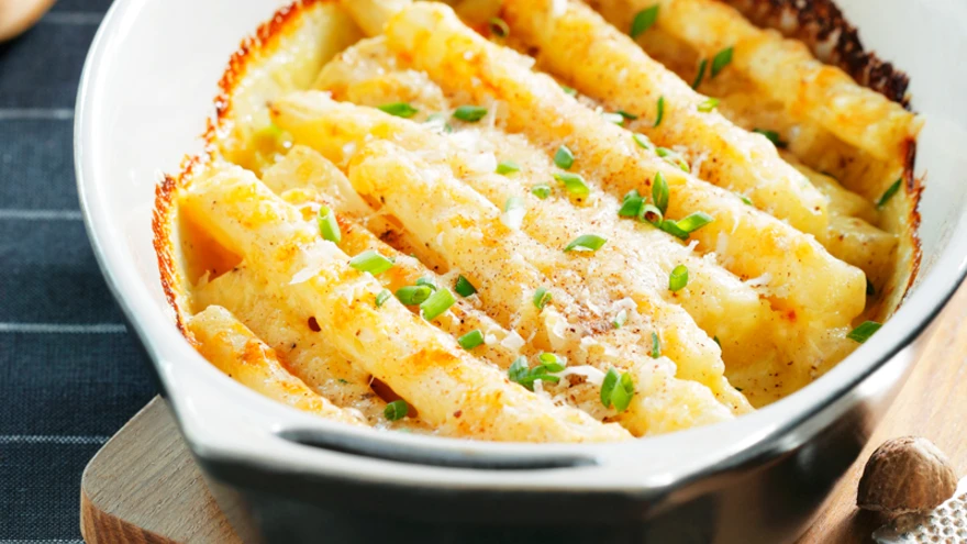 Gratääni tüüpi roog ehk ahjus üleküpsetatud keedetud mustjuured.