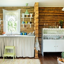 Kõik küttekehad tuli uuendada – avatud ruumi ehk köök-söögituba koos elutoaga soojendab nüüd soemüüriga pliit, kahte magamistuba aga ahi. Eluruumi oli majas algselt palju vähem, sest eluruumidega sama katuse all paiknes ka laut. Lauda koha peale ehitas Einar elutoa – seasulud lõhuti välja, laudaaknad tehti suuremaks, maja taha lõunakülge ehitati elutoa jätkuks väike terrass ning paigaldati kahepoolsed klaasuksed. „Elutoa terrassiukse paigaldamine oli üldse üks parimatest ideedest siin majas, muul juhul oleks seal olnud tilluke aken. Kahepoolne uks annab palju juurde – ruuduakendest avaneb metsale ja põllule imeline, rahustav ja unistav vaade,” kiidab Liina.