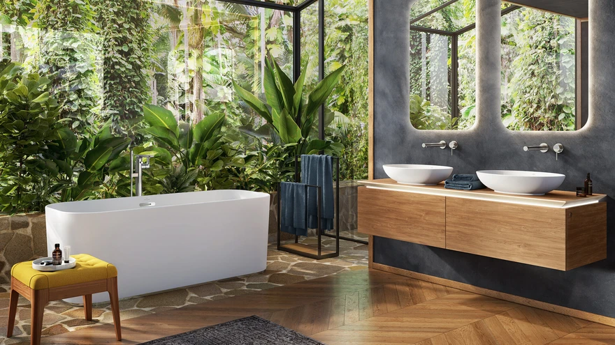 Matt on eriti huvitav seal, kus seda kõige vähem oodatakse – näiteks segistitel või korraga nii vanni sise- kui ka välispinnal. | foto: Villeroy & Boch GustavsbergAasta lemmiktoone võib kohata lihtsalt aknast välja vaadates või loodusesse minnes. Pürgimus on mati ja maalähedase poole.