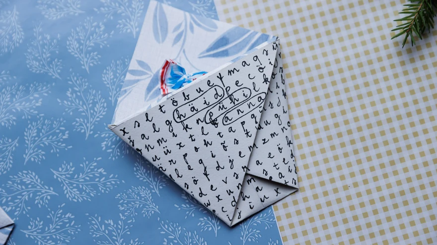 Tähesegadik loob võimaluse anda edasi pühadesoove või mõnd salajasemat sõnumit. | foto: TIINA KÕRTSINIKingitus ei pea olema mahult suur, et anda edasi oma head mõtet. Tihtipeale võib aga just väiksematele esemetele olla keerulisem pakendit leida. Paberist volditud ümbrikpakikesed valmivad aga vaid mõne hetkega.