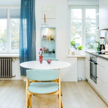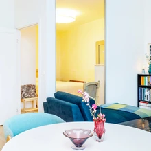 Aili Ermeli väike korter Kadriorus võlub erilise klaasist siseseina, oma looga esemete ning hästi läbi mõeldud valguslahendustega. Paigas on nii üld- kui ka funktsionaalne valgustus, hubasust lisavad seinavalgustid. Magamistoas on valitud stiiliga sobiv ja väga head üldvalgust andev lambimudel ning lugemiseks suunatava kupliga valgusti, söögilaua kohal paiknev rippvalgusti on ühteaegu nii atraktiivne kui ka funktsionaalne.
