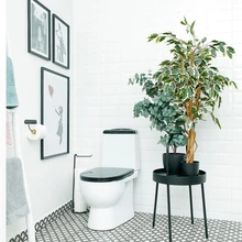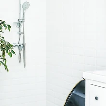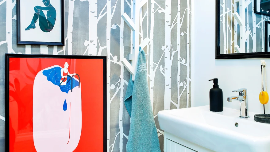 Heleri Arula ja Joosep Tooli kodu tualettruumide sisekujunduslikud lahendused on meeldejäävad ja kordumatud, muutes lihtsad ruumid eriliseks. Väikese tualettruumi sein, mille perenaine on kasemustriliseks värvinud, toob koos pildigaleriiga tillukesse ruumi elu ning värve. Suurema vannitoa mustvalge lahendus on taotluslikult kontrastne, siin lisavad isikupära lopsakad toataimed, pildid seintel ja fotod peegelkapil.