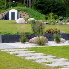 Nutika lahenduse leidis aiakujundaja mänguplatsile, sidudes selle kokku tuletegemise kohaga. Korralik tulease on nii suure aia puhul hädavajalik, et saaks oksi ja hooldamise käigus tekkivat risu põletada. Ja oma õuel on tore ka jaanituld teha.