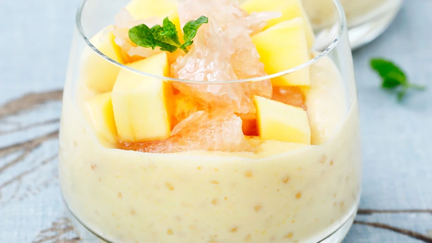 Pomeli-mangodessert tapioki-/saagopärlitega