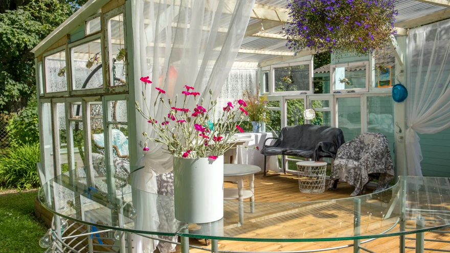 | foto: Meeli TulikPere ehitas suvekodu õuele vahva varjualuse, kuhu on eriti hea peitu pugeda vihma ajal ja istuda jahedal õhtul.